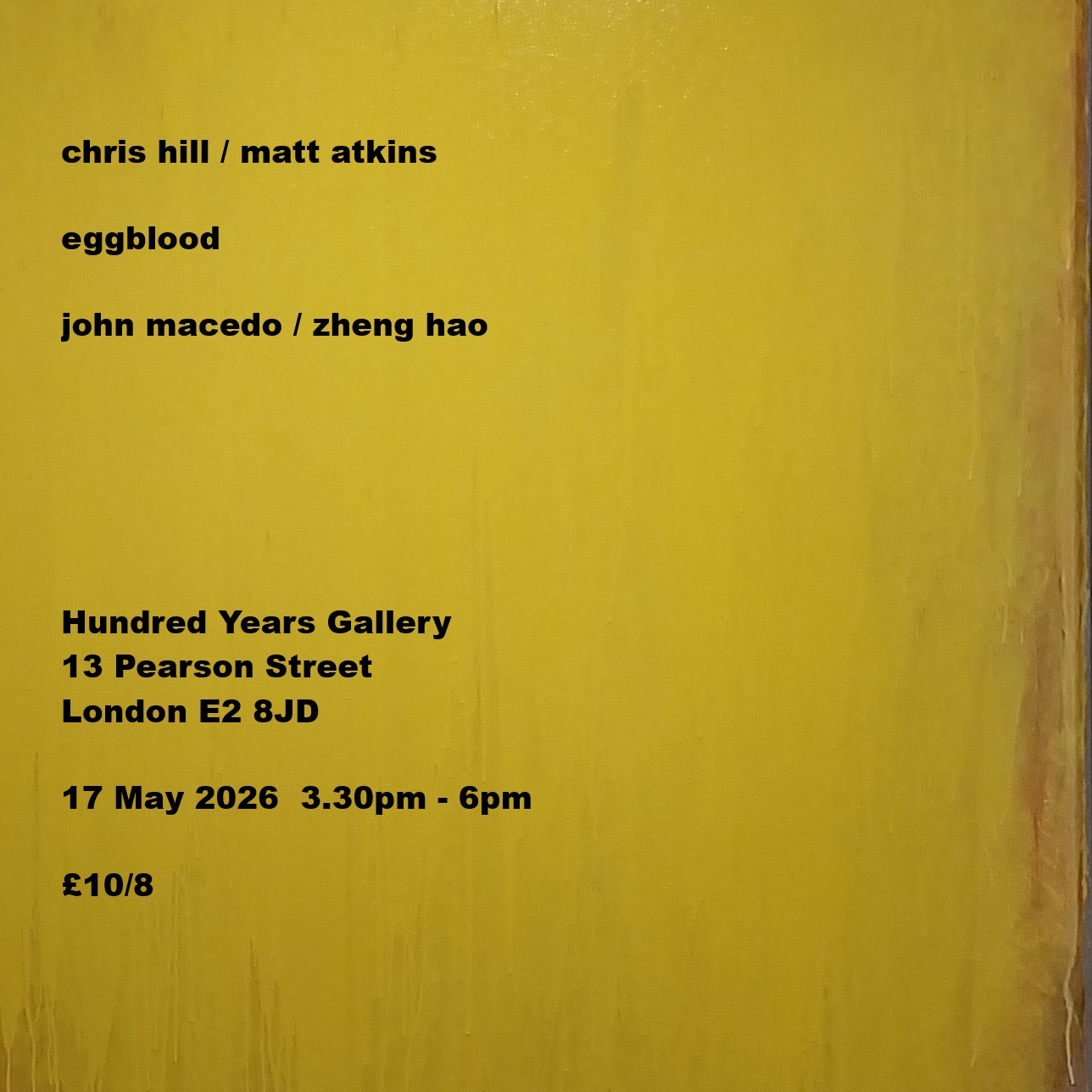 He performs live solo and has collaborated with a wide variety of musicians and artists including Phil Julian, Graham Dunning, Tom White, Yoni Silver, John Butcher, Cath Roberts, John Edwards, Michael Speers, Steve Noble, Sue Lynch, Lee Fraser and Adam Bohman, to name a few. He has had work released by The Tapeworm, Infant Tree, Hideous Replica, Sound Holes, and Beartown Records as well as releasing small run and object editions on his own label, The Black Plume Editions. He has performed and presented work in the UK, Europe and US and has led workshops and produced collaborative, educational and community-based projects for Whitechapel Gallery, South London Gallery, Artsadmin and New Contemporaries.